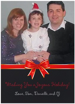 Like our card? Make your own at Shutterfly, so easy even an easily distracted mom who hasn't had her afternoon wine yet can do it. (Ours is the Big Bow card if you just want to be a shameless copycat. JK.)